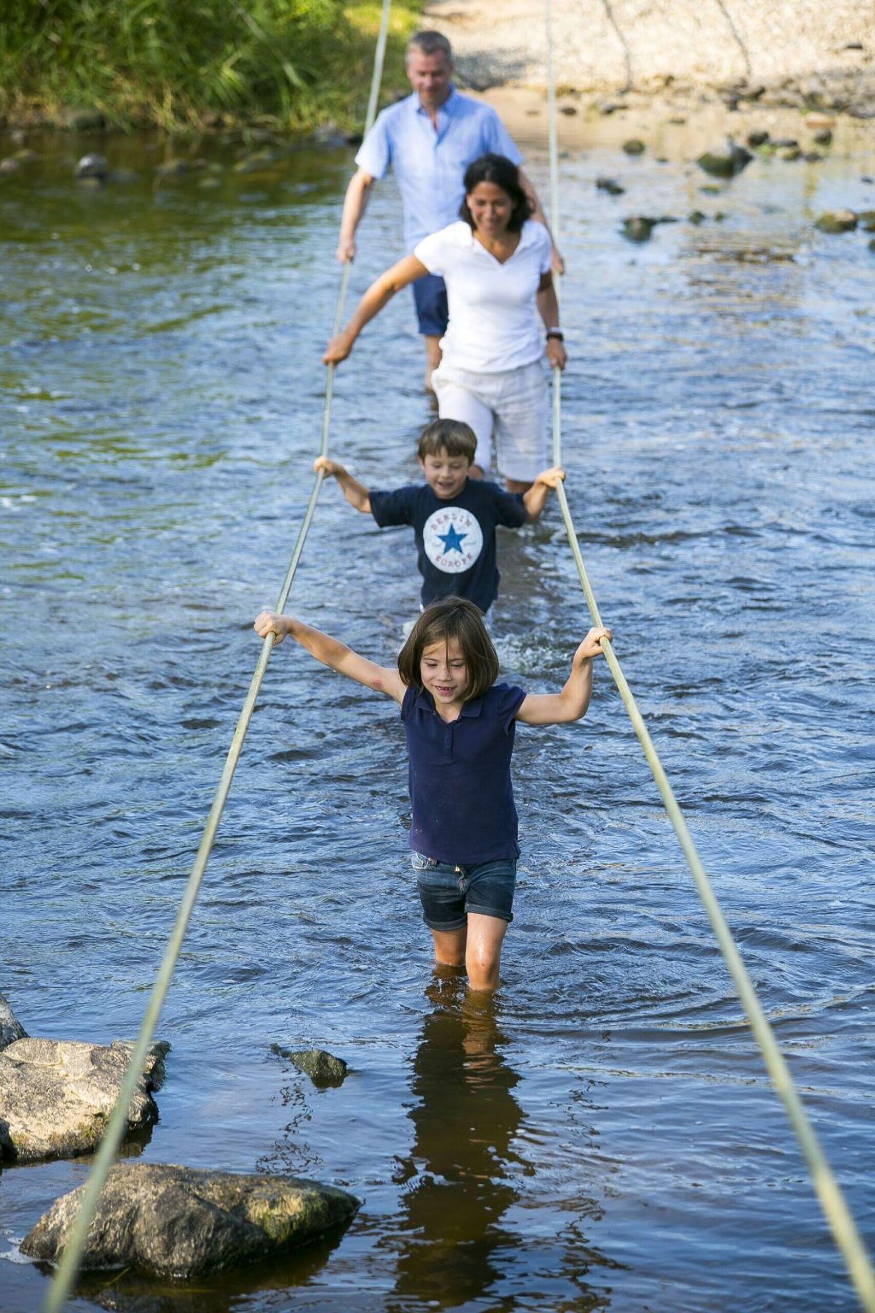 • Auf der Strecke gibt es: ein Lehmstampfbecken, eine Hängeseilbrücke, Balanciermöglichkeiten und vieles mehr.