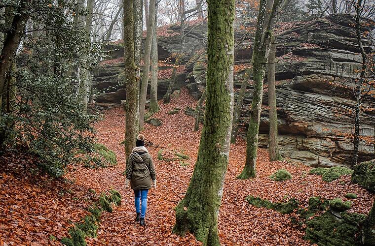 Die neun Kilometer lange Wanderung führt dich vorbei an einem Felsen. Der Sage nach soll dieser Fels die Augen von Frau Holle darstellen. Die Natur verwöhnt dich im Winter mit glitzerndem Raureif, plätschernden Bächen und einem Waldboden, der von Laub bedeckt ist.